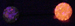 短波紫外線に対し弱いイエローの蛍光反応を示すキュービックジルコニア(左)。右はGGG、強いオレンジの反応を示している。